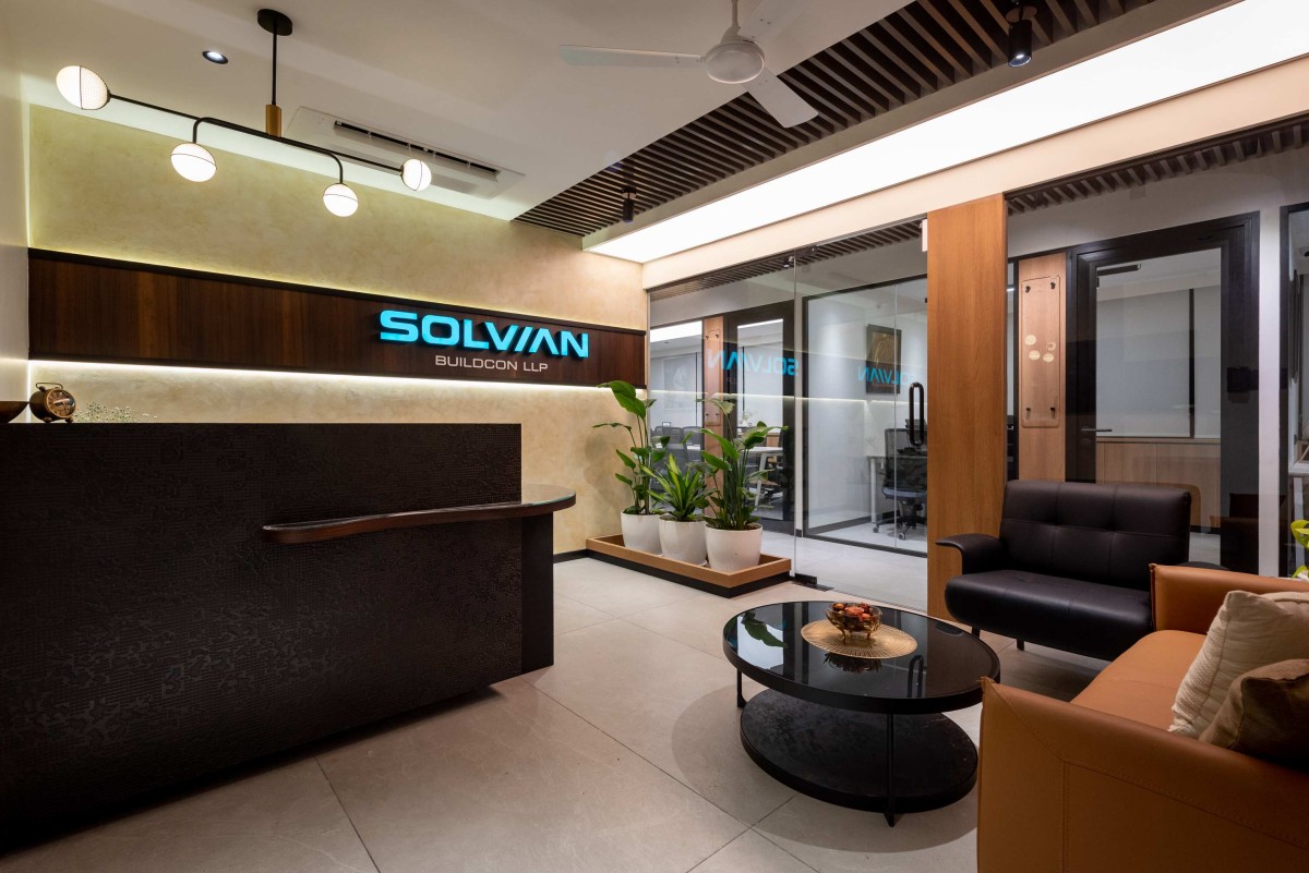 Hoot at Sight envisioned the interiors of this corporate office as a vibrant, contemporary workspace that seamlessly blends efficiency with elegance. The design departs from the rigidity of traditional layouts, embracing openness, natural light, and a fluid sense of movement. A warm neutral palette, complemented by the company’s brand colors, establishes the tone for a professional yet welcoming environment.