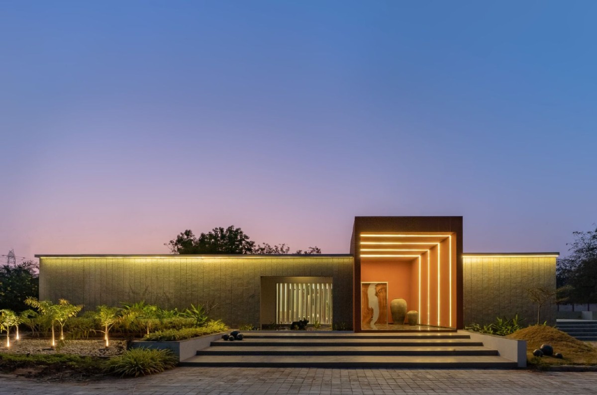 Night exterior view of The Silent Wall by Maanchitra