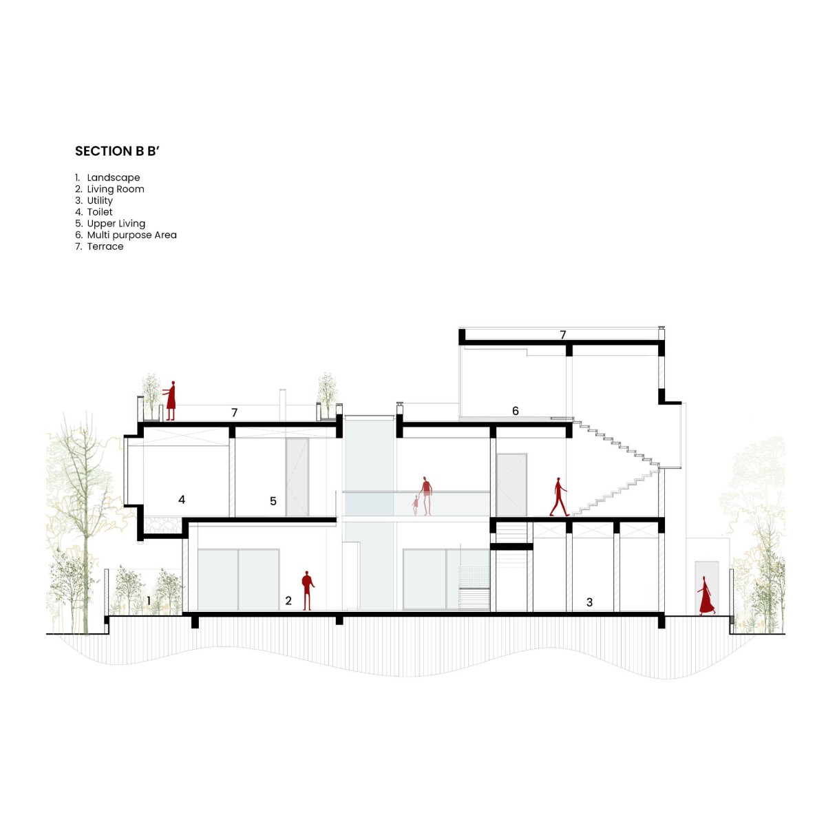 Section BB of The Split House by Collage Architecture Studio