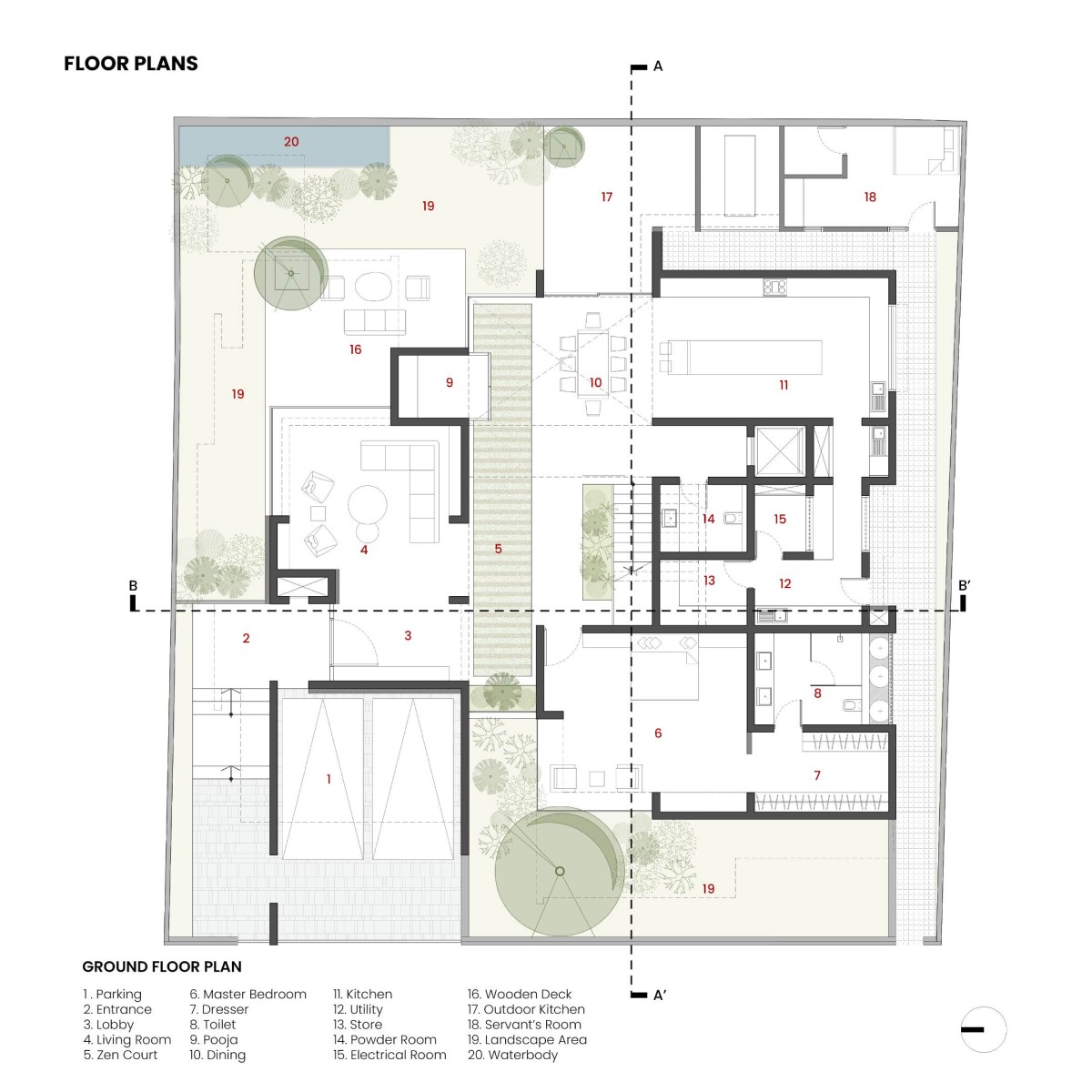 Ground Floor Plan of The Split House by Collage Architecture Studio