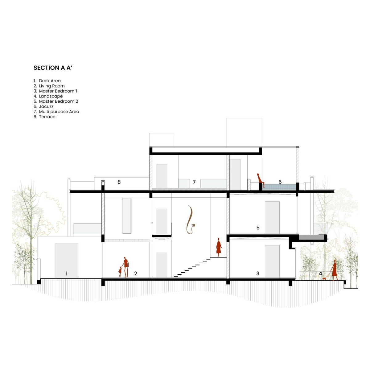 Section AA of The Split House by Collage Architecture Studio