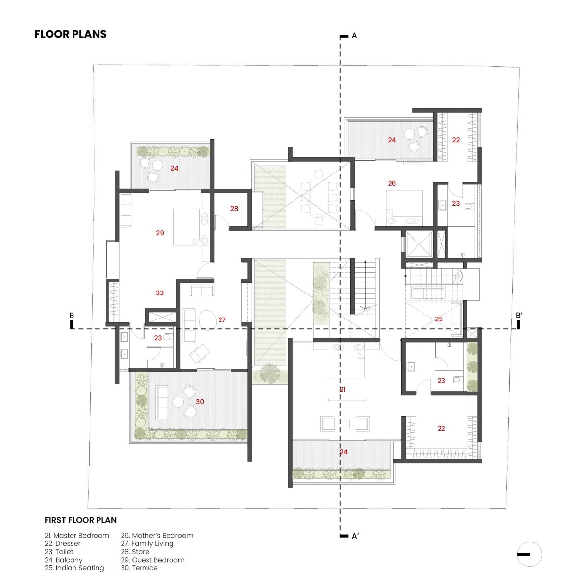 First Floor Plan of The Split House by Collage Architecture Studio