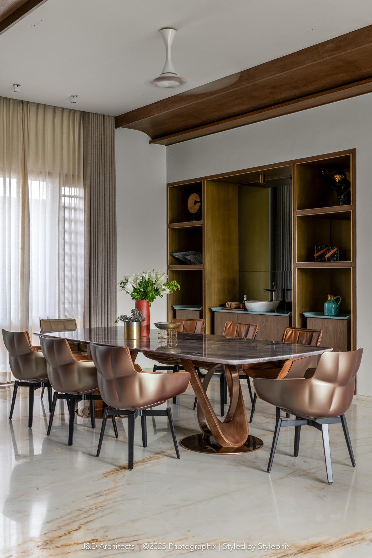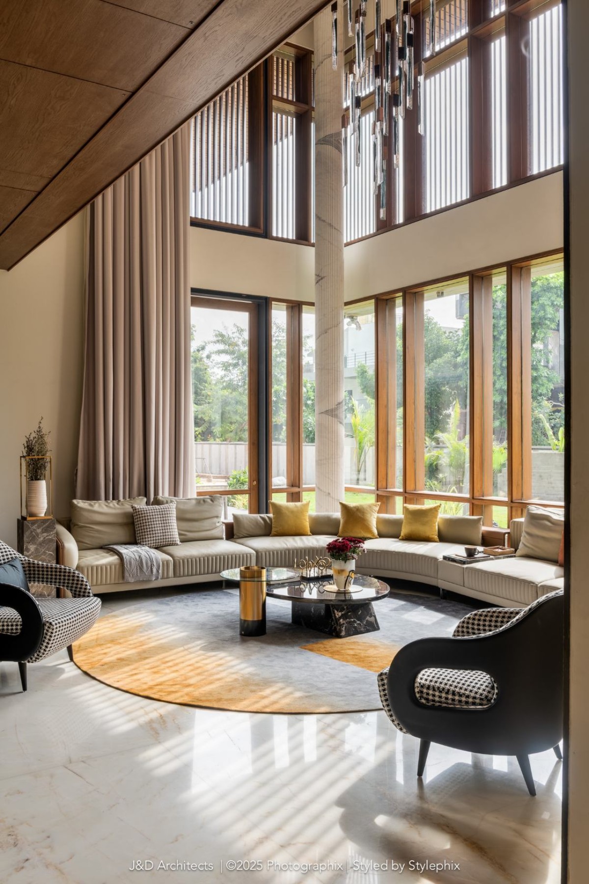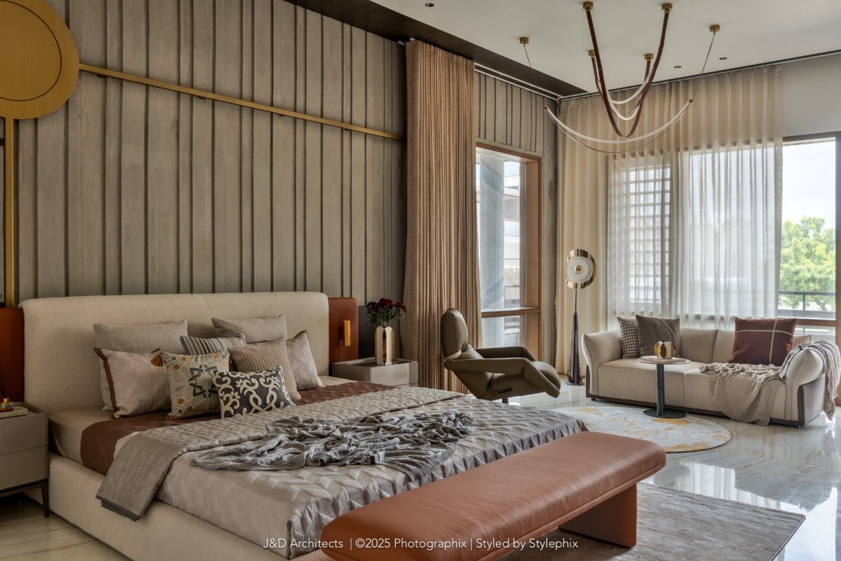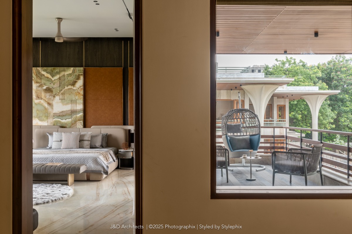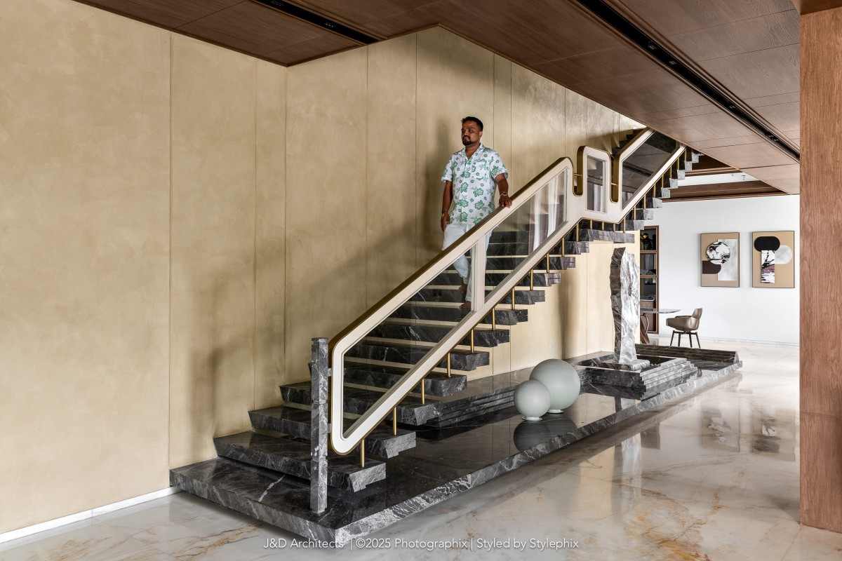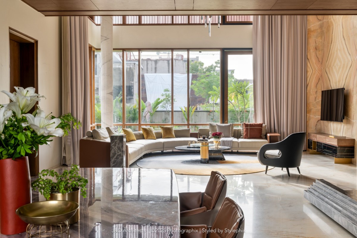 “Architecture is more than just constructing spaces; it is about shaping experiences and crafting environments that reflect individuality while addressing the nuances of daily life.” Says the principal architect. Designed by Architect Disha Patel & Jaymin Patel of J&D Architects, the luxury abode blurs the line between functionality with nature, inviting the outdoors into every corner of its thoughtfully composed space. The firm has consistently redefined architectural boundaries, weaving together art, design, and functionality to create spaces that resonate deeply with those who inhabit them.