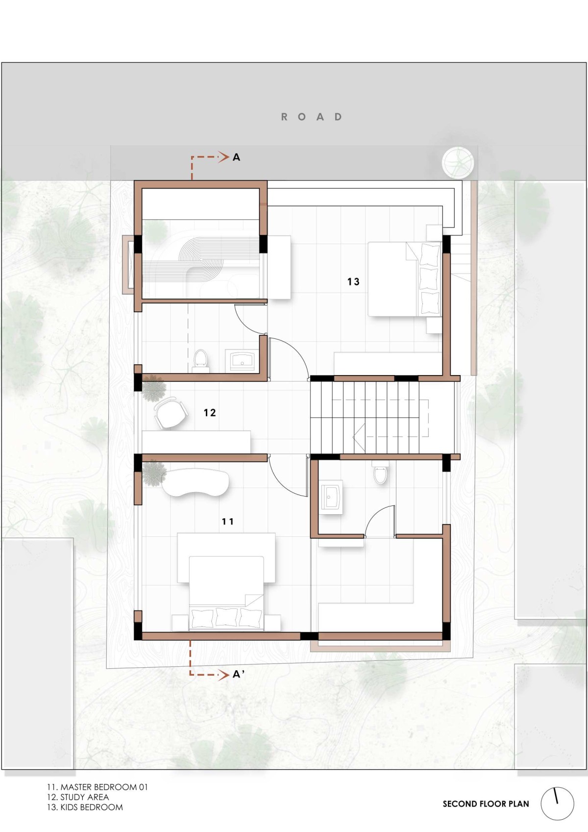 Second Floor Plan of Whispering Voids by Cantilever Architects