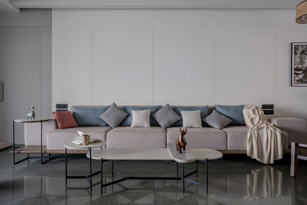 In this 2500 sq.ft apartment, poised on the banks of the Tapi River, the architecture is not merely a construction of walls but a tactile experience — a living, breathing space where materiality and landscape converge. The home reveals itself through layers, each transition orchestrated to engage the senses, to dissolve boundaries between the inside and outside.