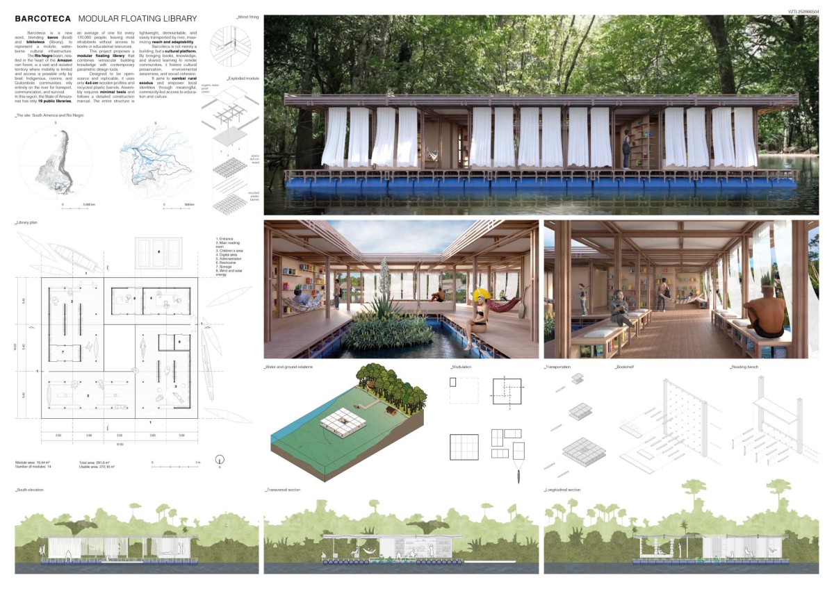 This project proposes a modular floating library that combines vernacular building knowledge with contemporary parametric design tools.