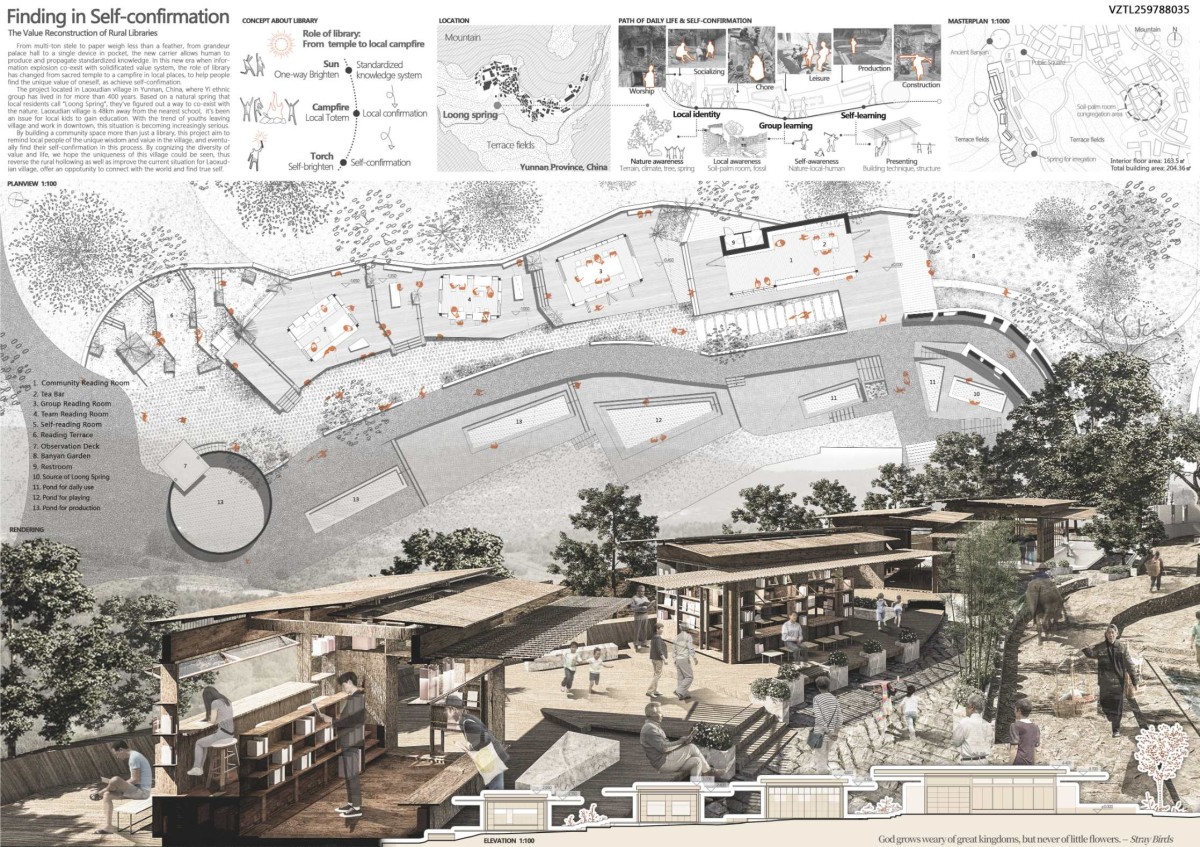 SECOND PLACE - Bivacco Library by Jinyue Hu & Xiang Li (United Kingdom)
