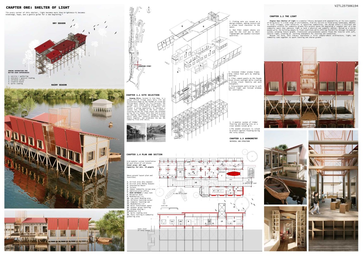 The top three winners and Best Student were awarded total prize money of $4,500 while ten entries received Honorable Mentions. Here are the winning entries. The full result for the competition the Tiny Library 2025 Architecture Competition can be found at –